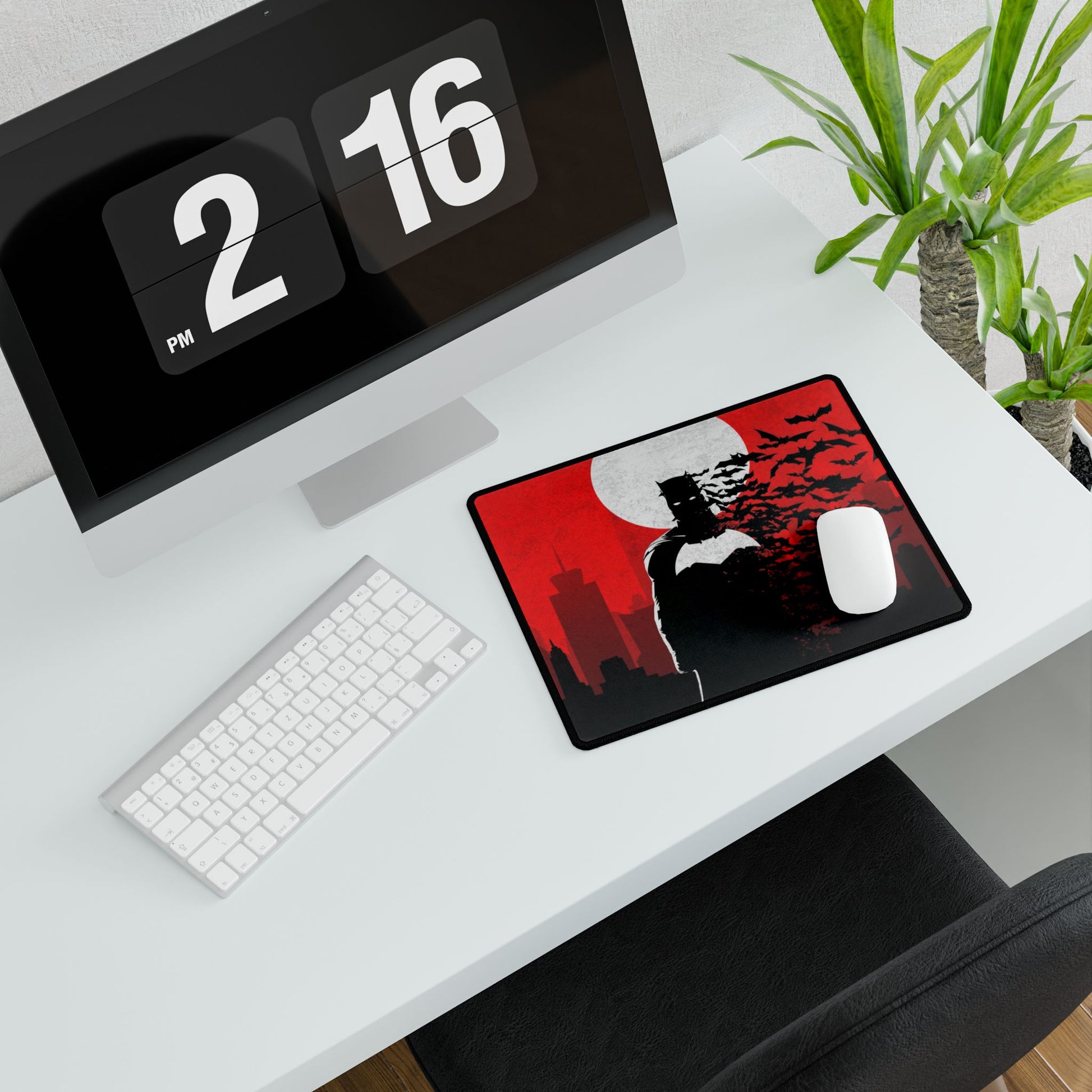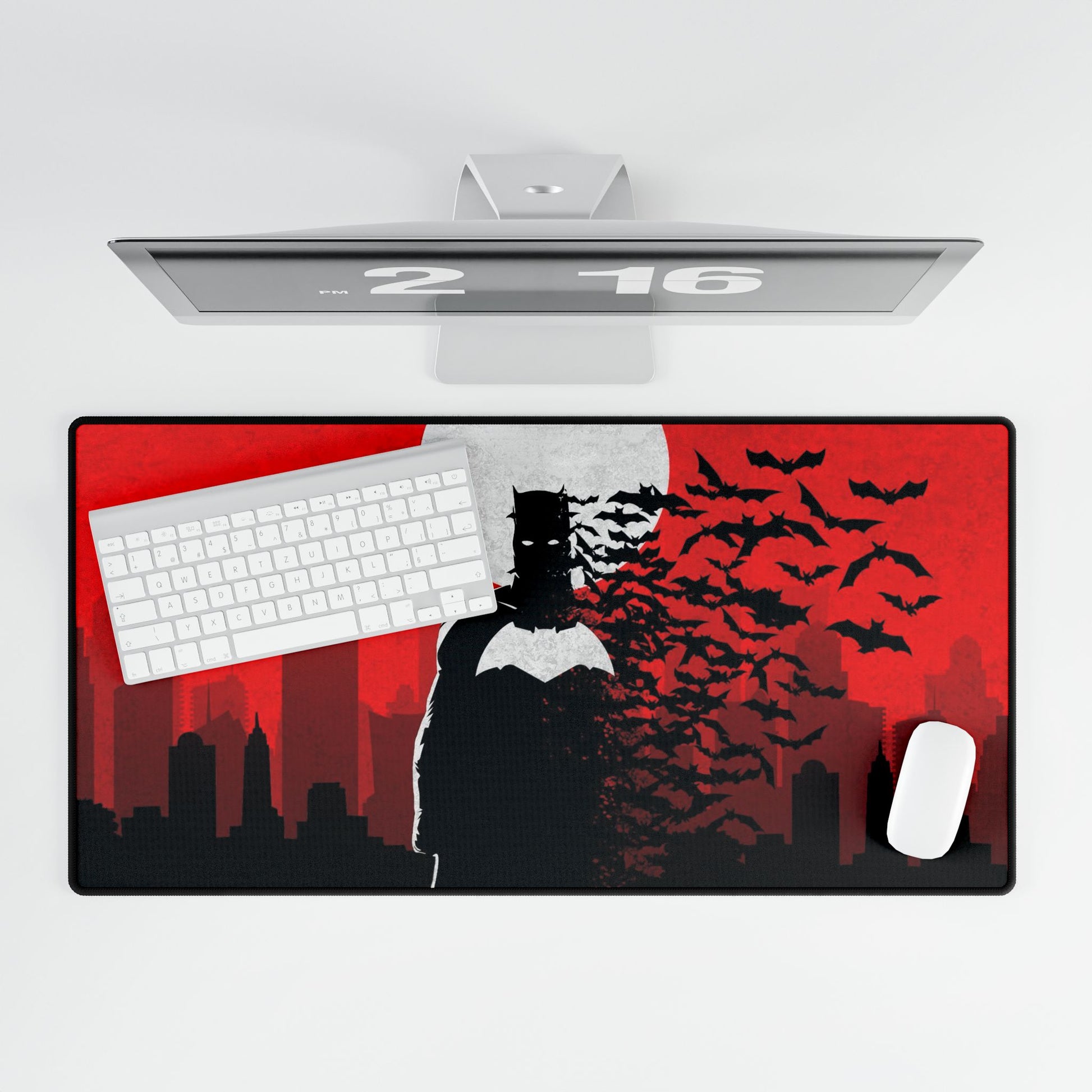 Dark Knight silhouette Desk Mat | Bats, Red Moon Cityscape, SuperHero, AntiHero, PerfectGift, Comics Lover
