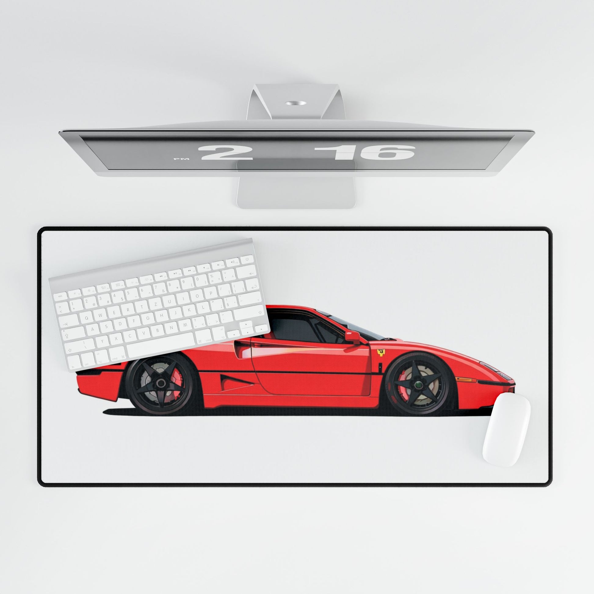 Ferrari F40 Artistic Red Sports Car Desk Mat | Racing Car Illustration Desk Mat