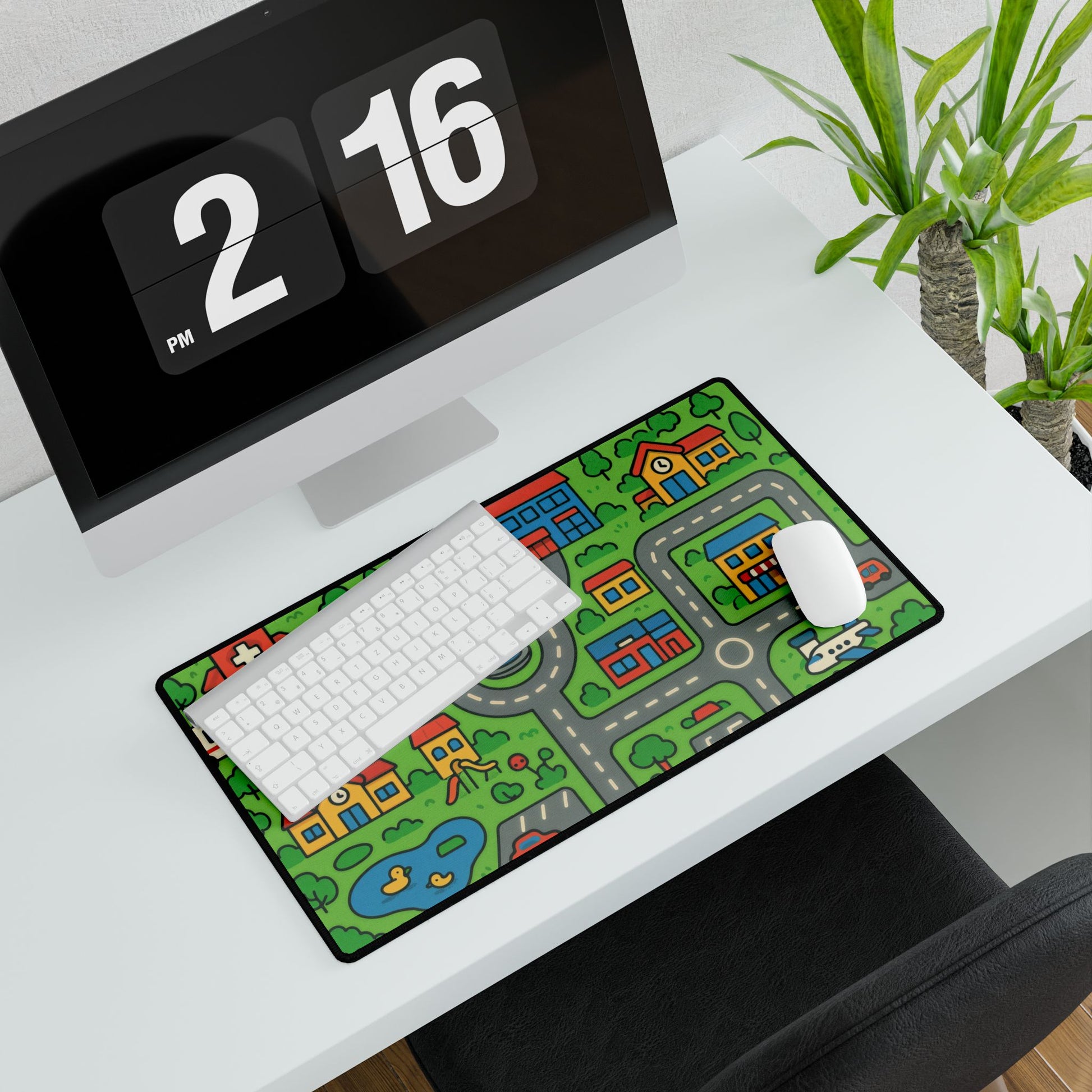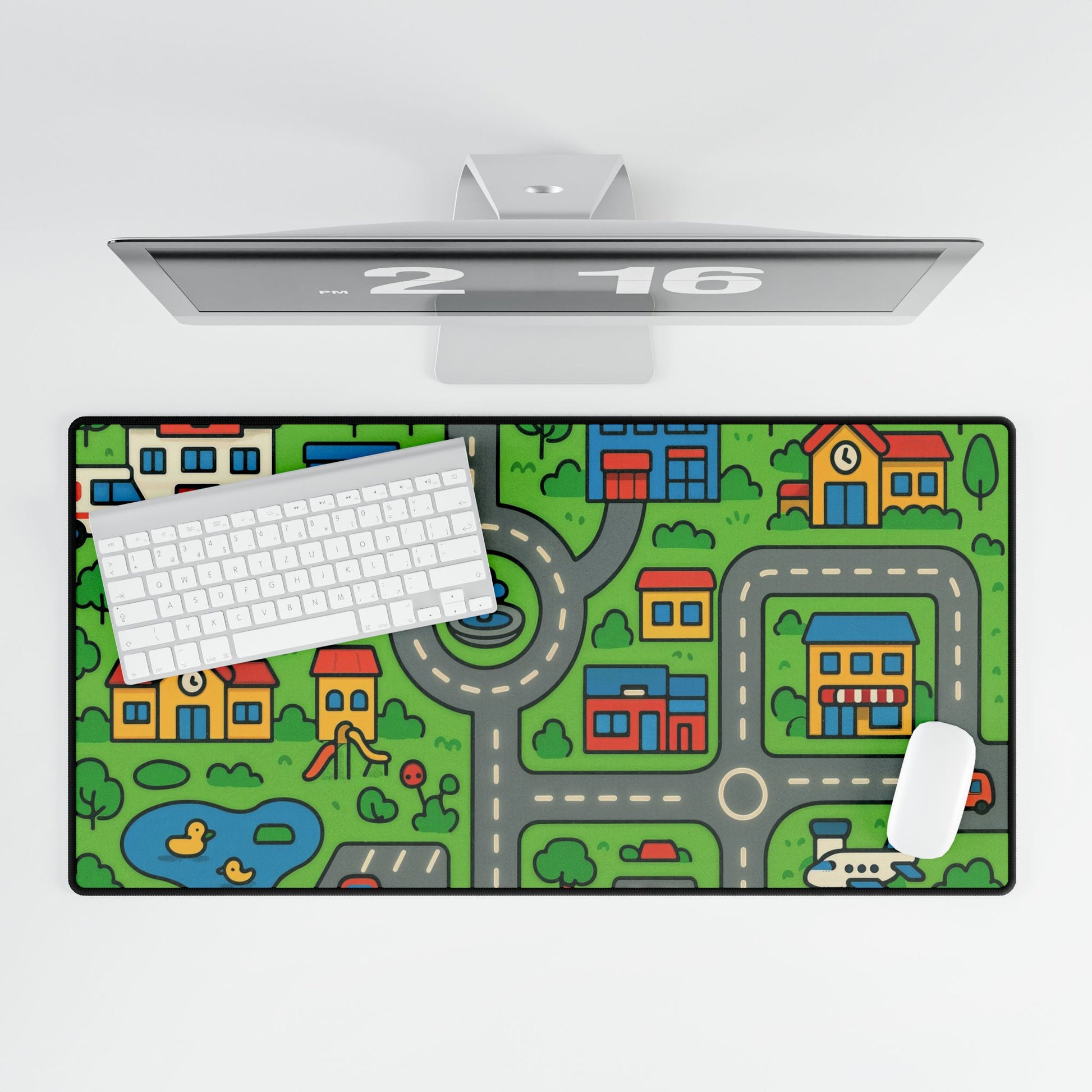 Nostalgic Playful Kids Desk Mat, Educational Play Area, Home Office Decor, Road Map Desk Pad, Imaginative Workspace
