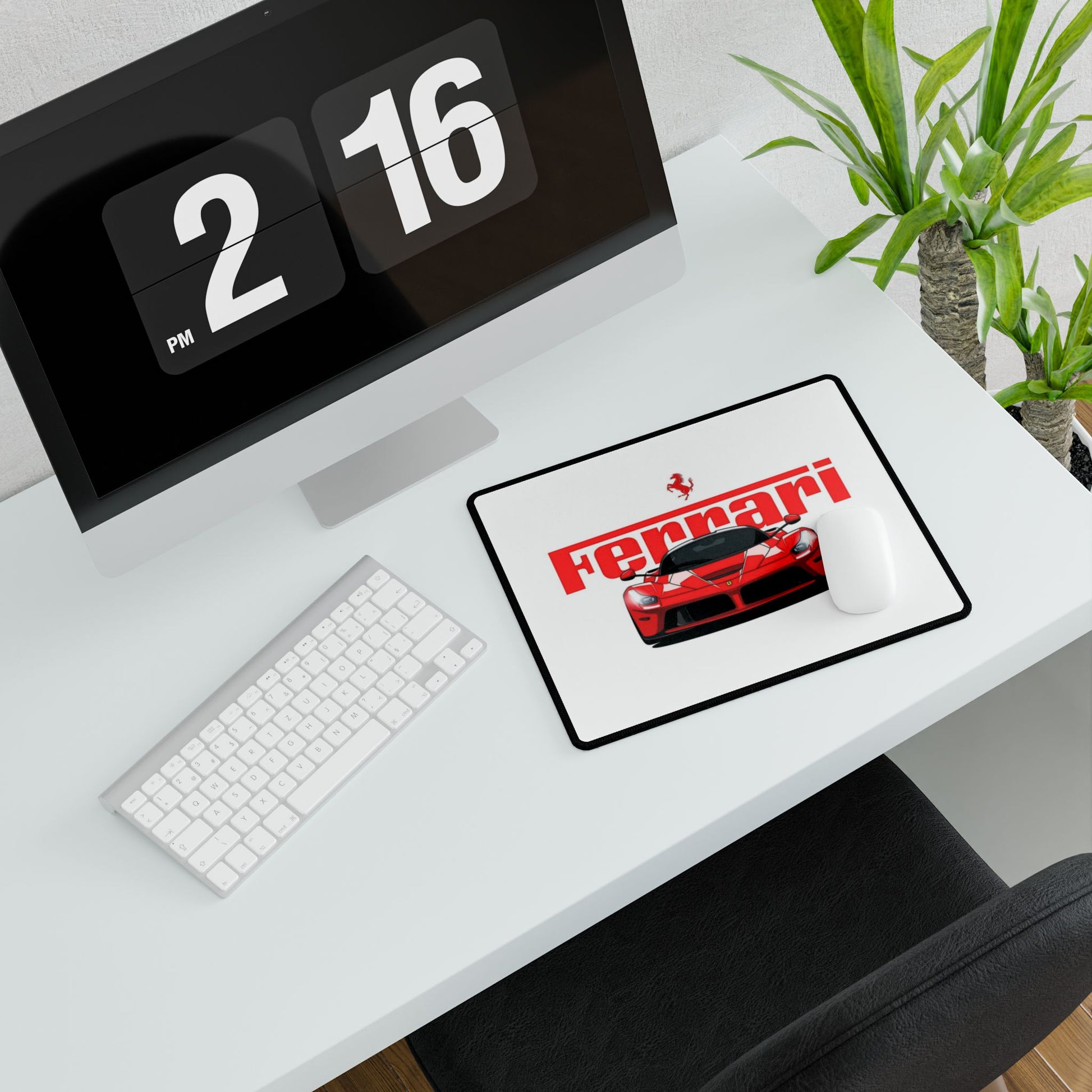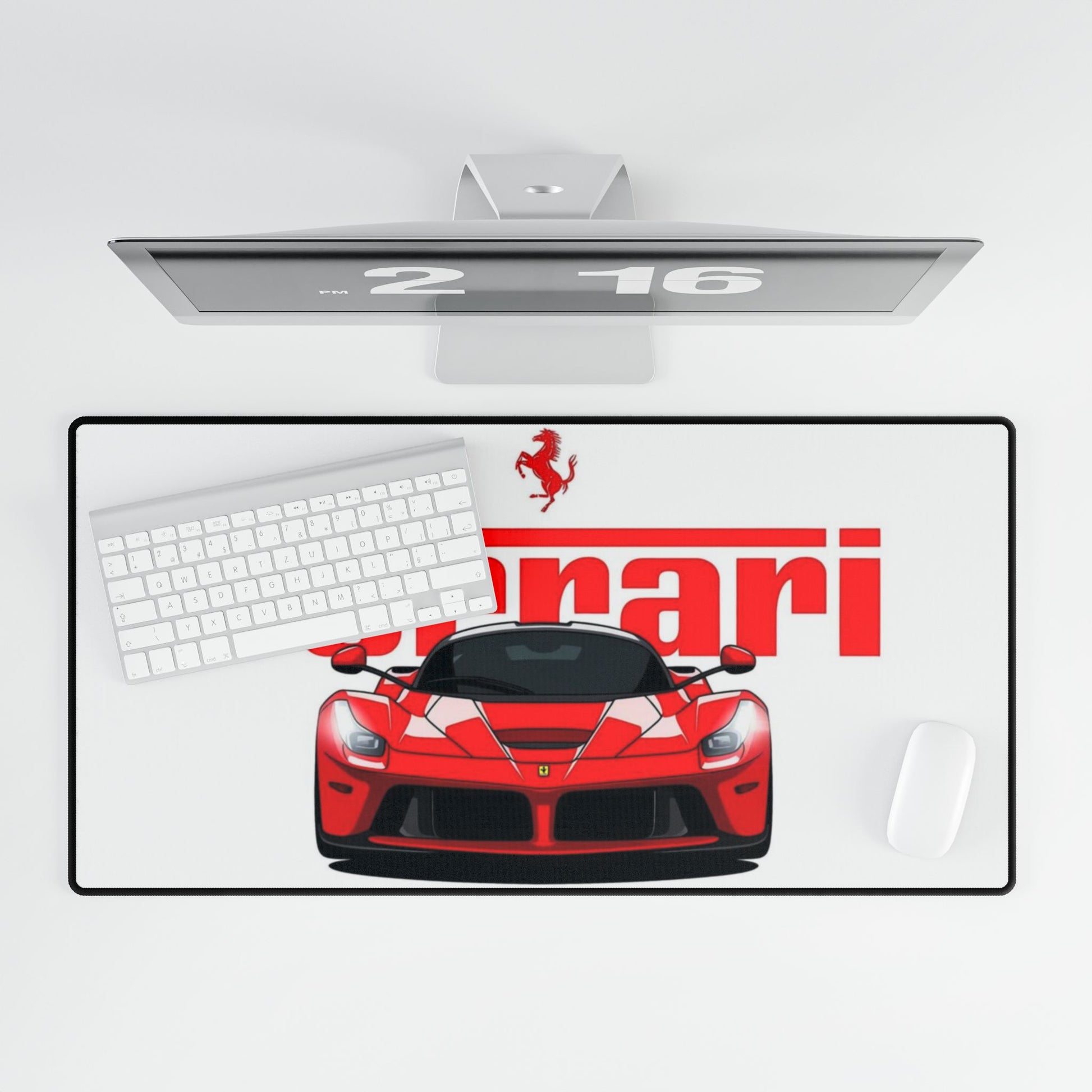 Red Ferrari Race Car Desk Mat | Racing Logo Mouse Pad